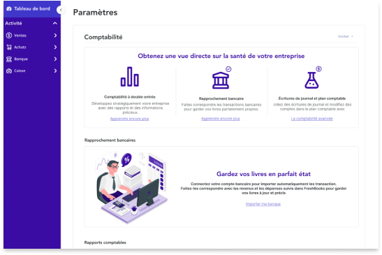 Une solution complète pour les ventes, achats, articles et la gestion bancaire de votre entreprise.